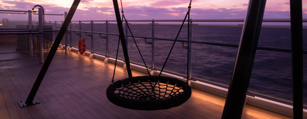 Visit The Net on Deck 16 for a death-defying view of the waters below. | The sail-away party is not to be missed. Poolside on deck 15 is where things will kick-off the sailing. | The Galley is open, and the Dock has small bites and beverages. | For a beautiful yet more subdued sail-away, find a spot on Deck 7 aft, The Dock. |